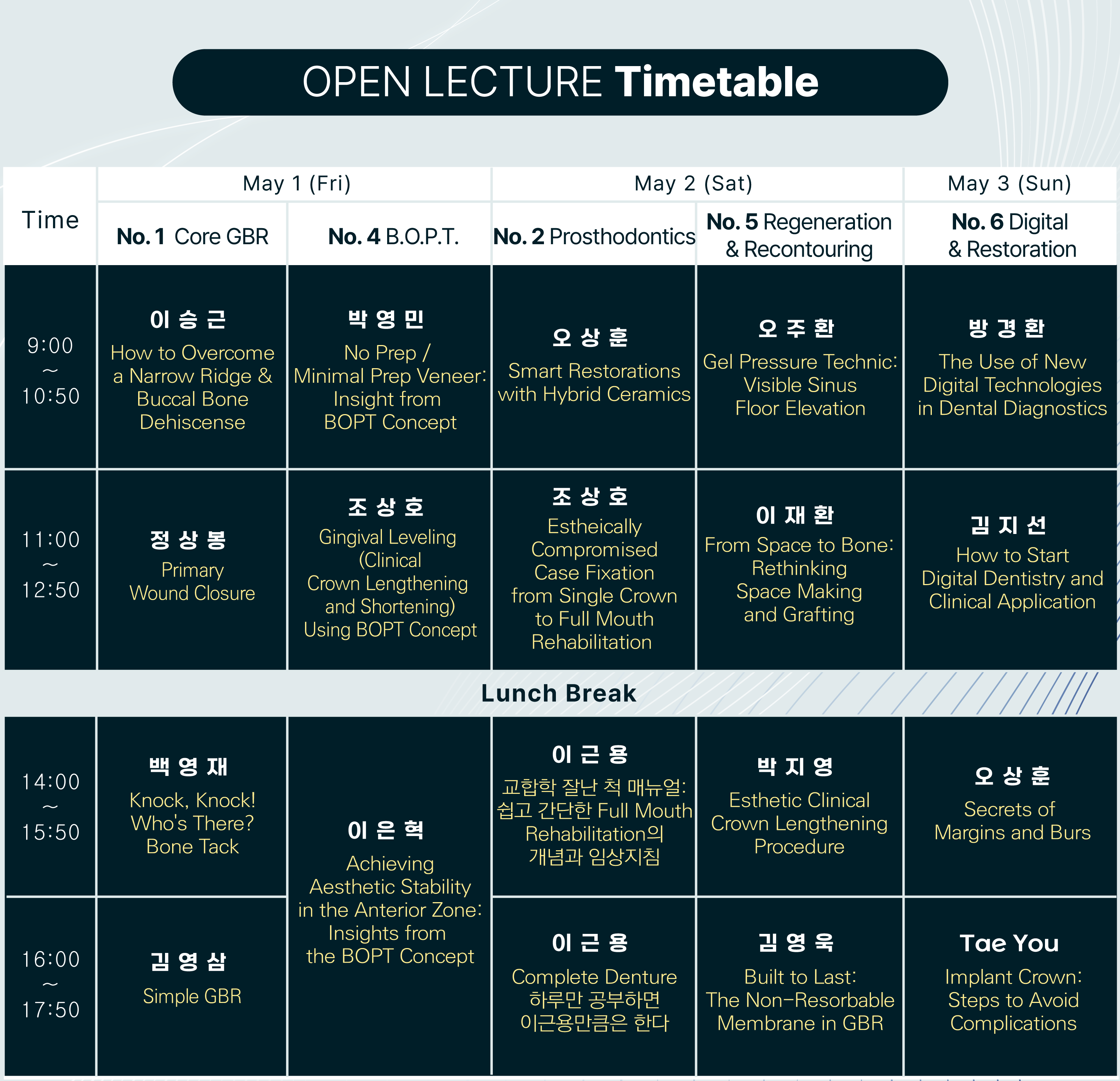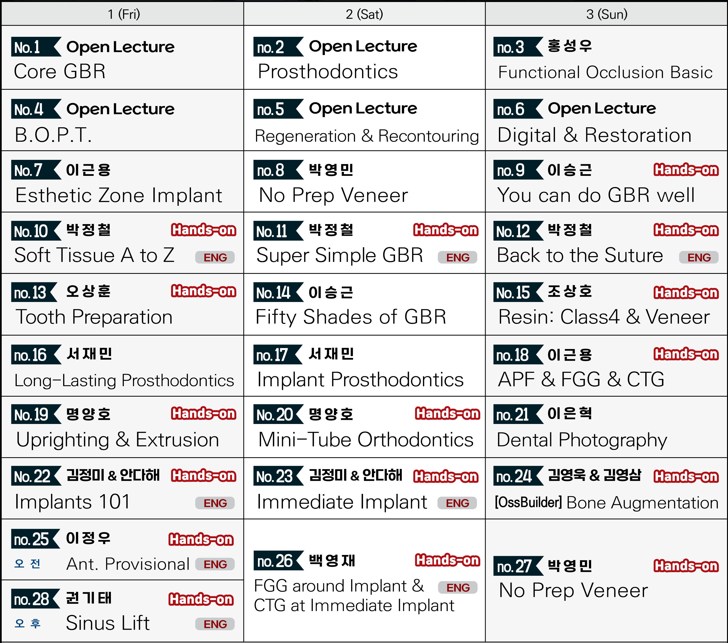 한국의 유명한 연자들을 초청하여, 3일동안 이론 및 실습 강의들이 한 곳에서 동시에 진행됩니다.