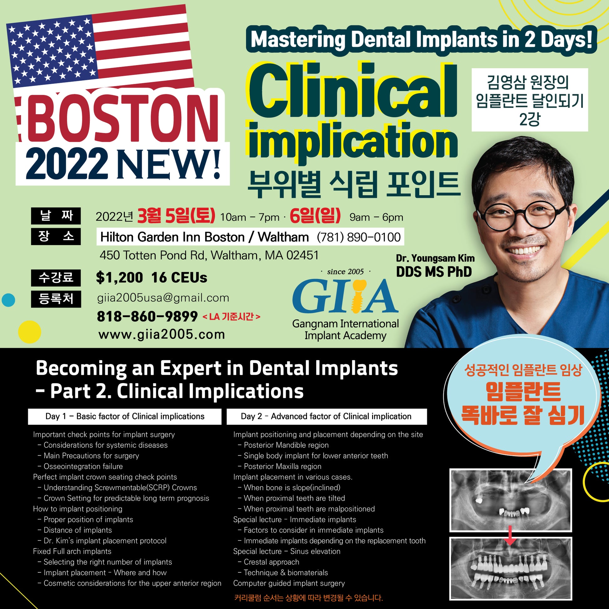 Boston) Clinical Implication- Mastering Dental Implants [2022/3/5 ~ 3/6]