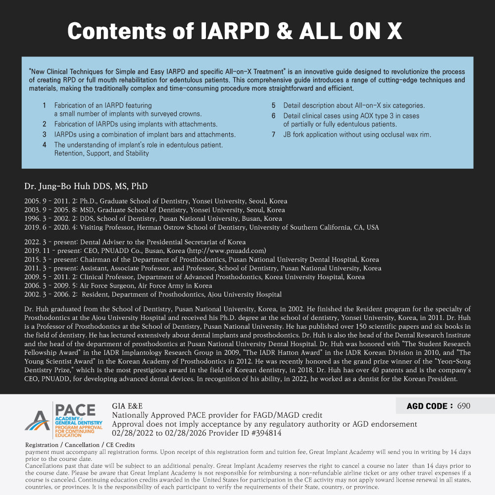 "New Clinical Techniques for Simple and Easy IARPD and specific All-on-X Treatment" is an innovative guide designed to revolutionize the process of creating RPD or full mouth rehabilitation for edentulous patients. This comprehensive guide introduces a range of cutting-edge techniques and materials, making the traditionally complex and time-consuming procedure more straightforward and efficient.