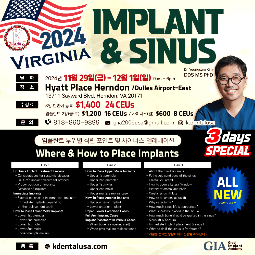 Virginia 3days Special) Implants & Sinus [2024/11/30 ~ 12/1]