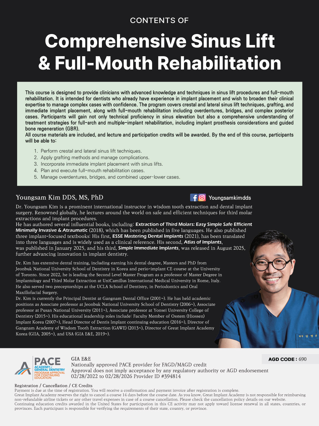 Dr. Youngsam Kim is a prominent international instructor in wisdom tooth extraction and dental implant surgery. Renowned globally, he lectures around the world on safe and efficient techniques for third molar extractions and implant procedures.
