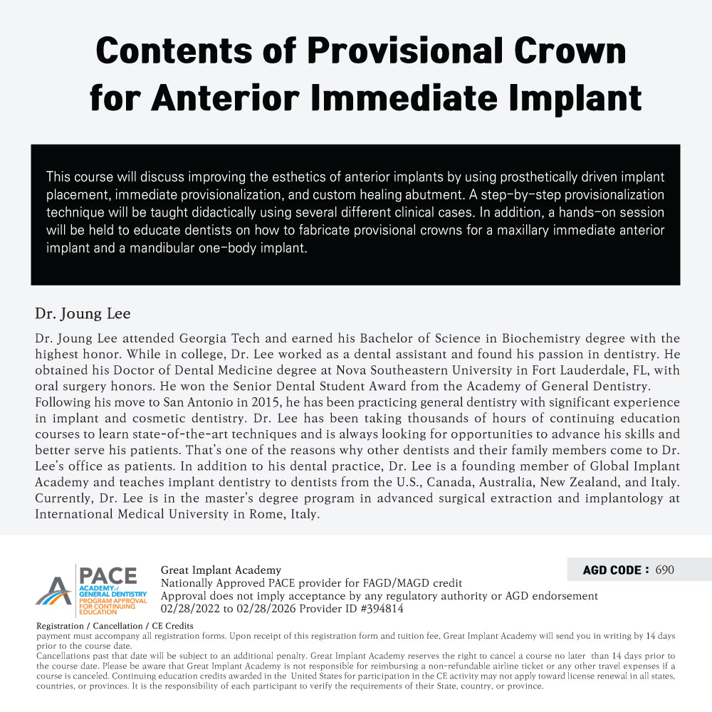 Home Implant Courses New York) Provisional Crown for Anterior Immediate Implant [2023/5/7]