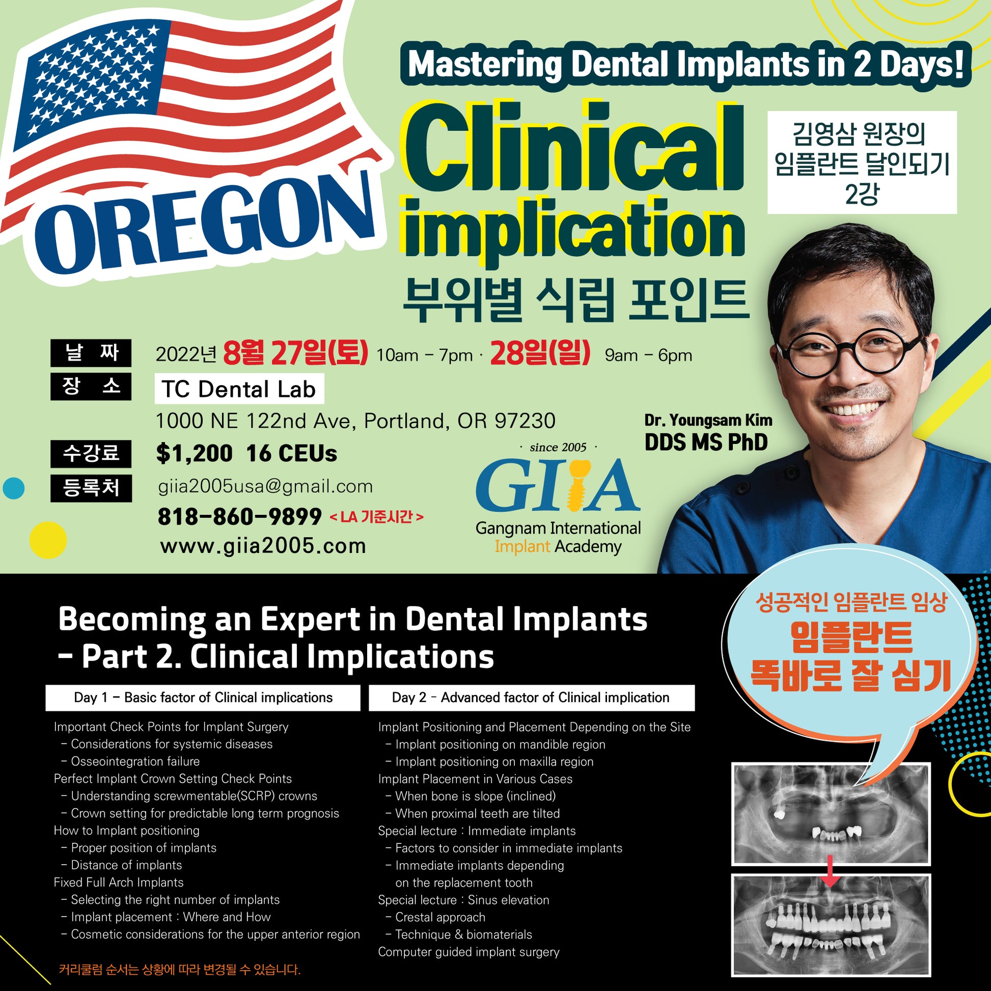 Oregon) Clinical Implication- Mastering Dental Implants [2022/8/27 ~ 8/28]