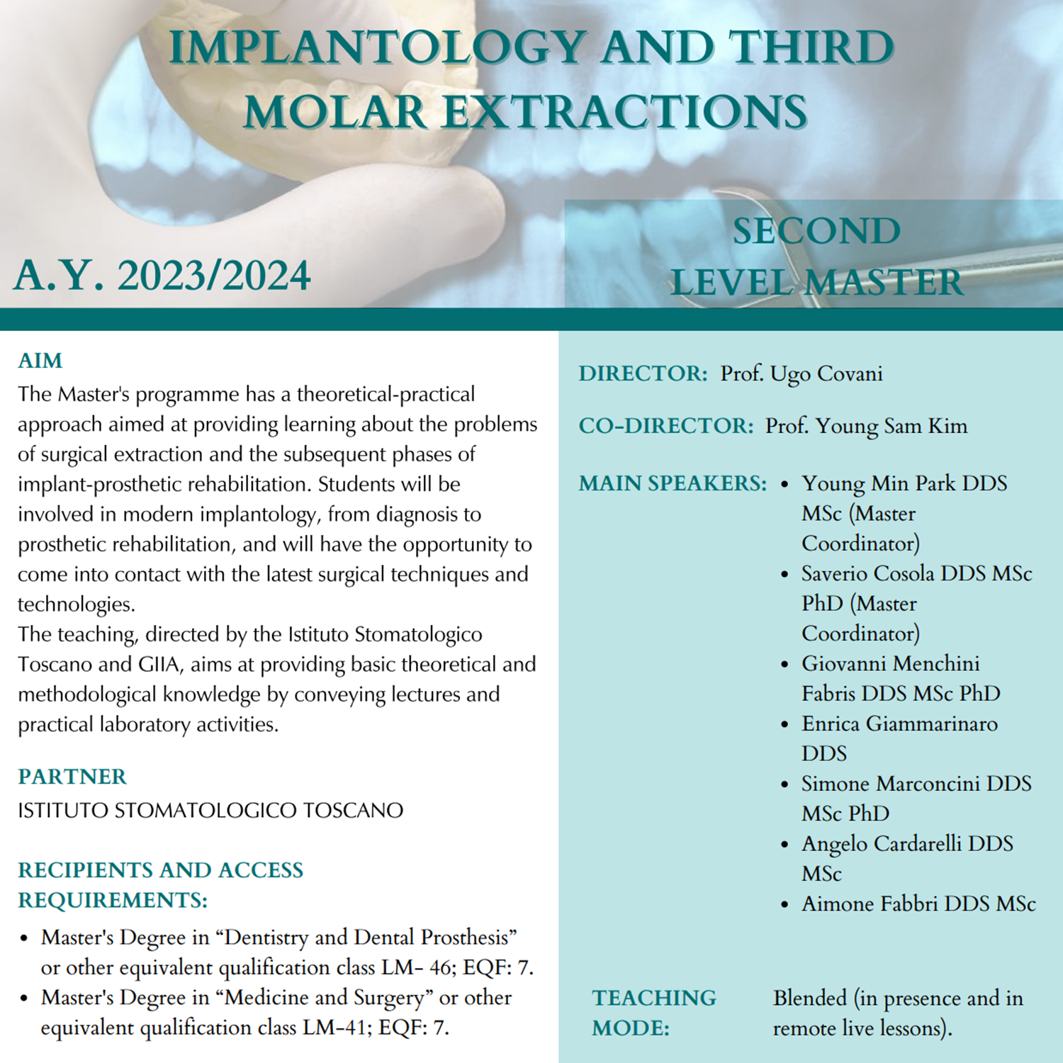 Rome Italy) Implantology And Third Molar Extraction (SECONE LEVEL MASTER) [2023/2024]
