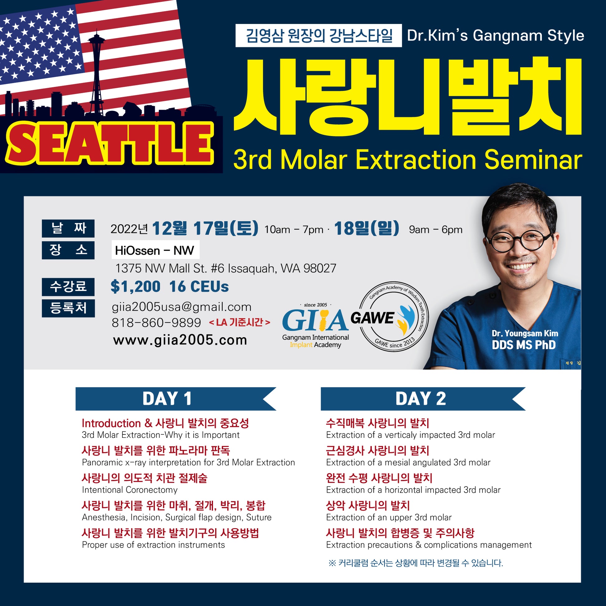 Seattle) 3rd Molar Extraction Seminar [2022/12/17 ~ 12/18]